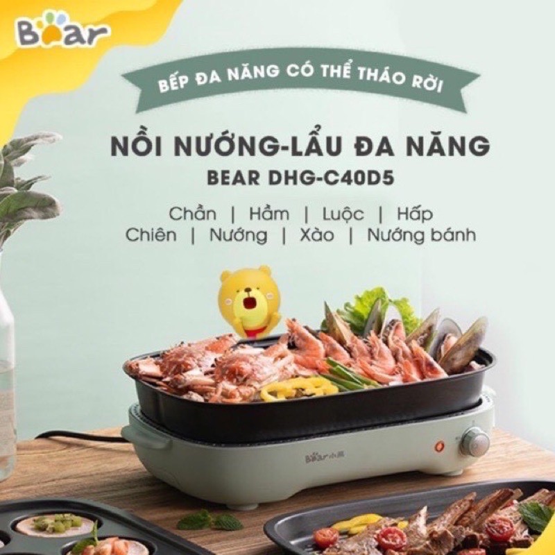 [Hàng Sẵn] Nồi Lẩu Nướng 3 Khay Đa Năng Có Thể Tháo Rời BEAR DHG -C40D5 - Bếp Nướng Điện 3 Trong 1 - BH 12 Tháng