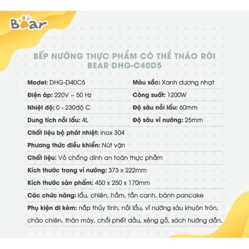 Giới thiệu [Hàng Sẵn] Nồi Lẩu Nướng 3 Khay Đa Năng Có Thể Tháo Rời BEAR DHG -C40D5 - Bếp Nướng Điện 3 Trong 1 - BH 12 Tháng