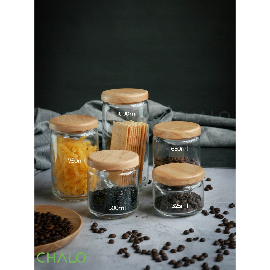 Giới thiệu [Chính hãng] Set 5 hũ thủy tinh Ocean Pop nắp gỗ 325 - 500 - 650 - 750 - 1000ml