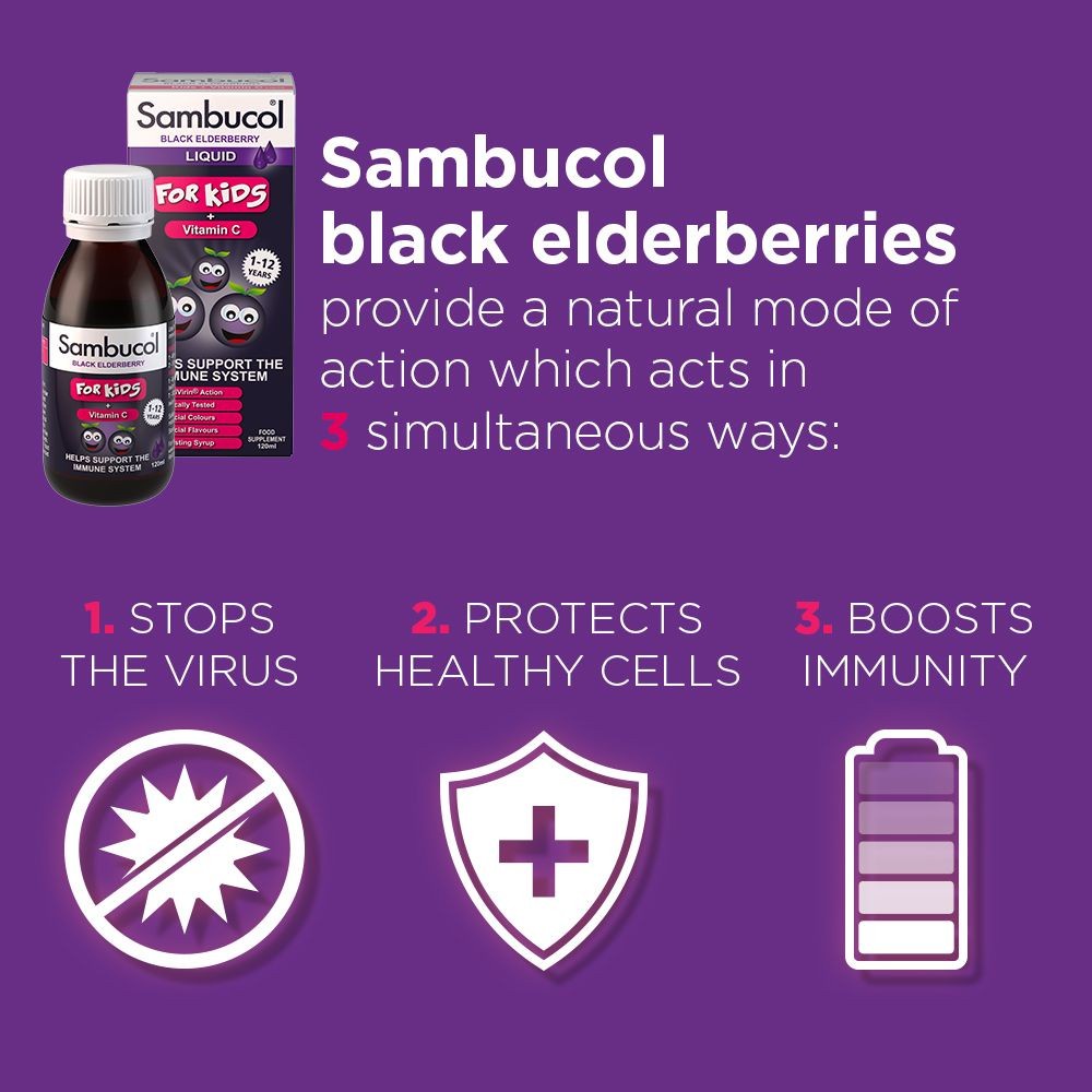 Sambucol for kids được đặc chế dành riêng cho trẻ từ 1 đến 12 tuổi, chứa hàm lượng lớn vitaminC giúp bé yêu chống lại vi khuẩn gây bệnh khi thay đổi thời tiết. Sản phẩm dành được giải thưởng sản phẩm y tế mới nhất và sản phẩm chiết xuất từ quả cơm cháy tốt nhất trong 4 năm liên tiếp tại Mỹ.