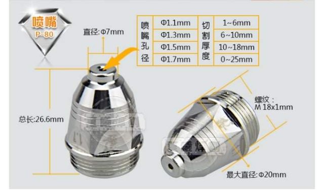 Béc cắt plasma P80 dùng cho súng cắt plasma.* Đóng Gói 10 Bộ