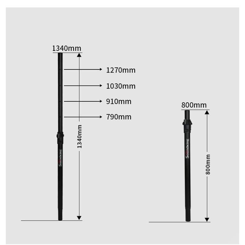 Sản phẩm cây chống loa Soundking DB023B của thương hiệu Soundking với chất liệu thép cứng cáp, cho phép chịu lực 50kg đáp ứng cho hầu hết các mẫu loa full đơn với kích cỡ khác nhau hiện nay trên thị trường. Có thể thay đổi chiều cao linh hoạt từ 0,8-1,34 mét giúp bạn ứng dụng cách tốt nhất cho hệ thống loa của mình. Cây chống loa Soundking DB023B cần kết hợp với sản phẩm đĩa thép Soundking DC016 để bắt vào các loại loa sub làm đế cắm cho cây chống loa.