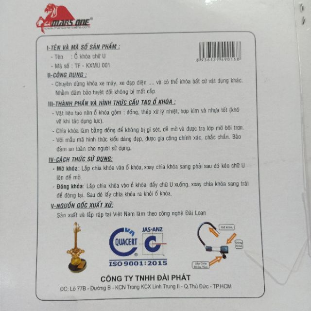 - Tên sản phẩm: Ổ khóa chữ U Mars One