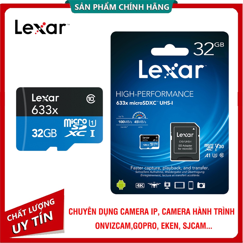 [Chính hãng] Thẻ nhớ chính hãng LEXAR 32GB Cao cấp, tốc độ đọc lên tới 100Mb/s - Bảo hành chính Hãng Mai Hoàng