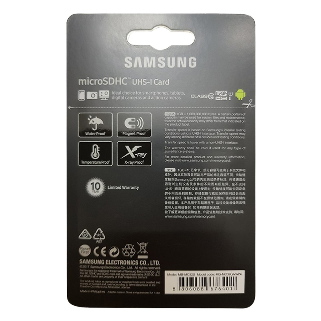 - Thẻ nhớ Samsung Plus 32GB có thể chịu được tia X của máy quét hành lý hoặc từ trường của nam châm.