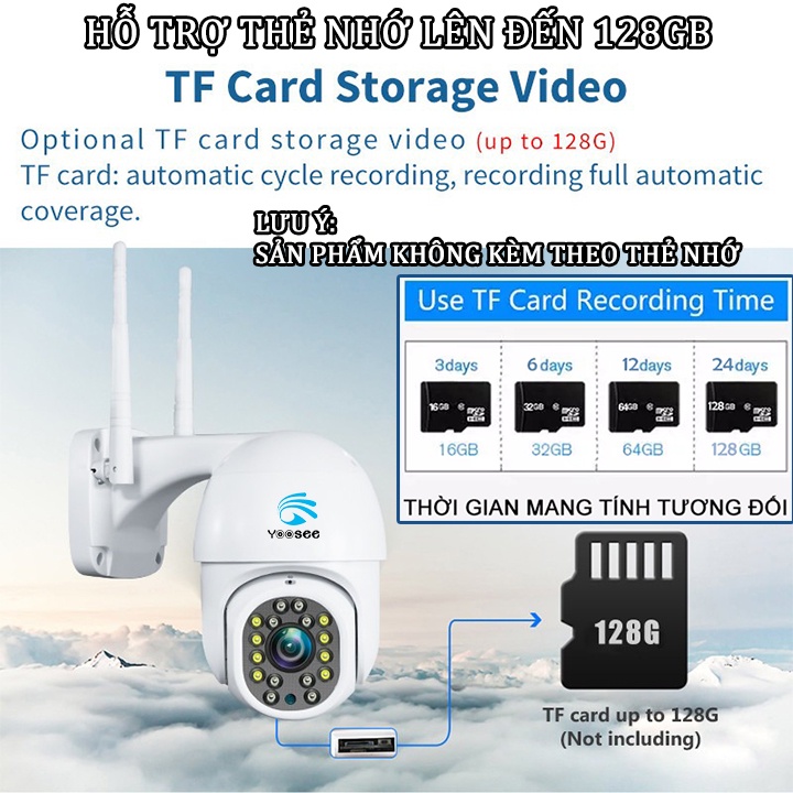 [HÀNG TO]Camera wifi ngoài trời yoosee PTZ chống nước 360 độ đêm có màu full hd báo động xoay theo chuyển động