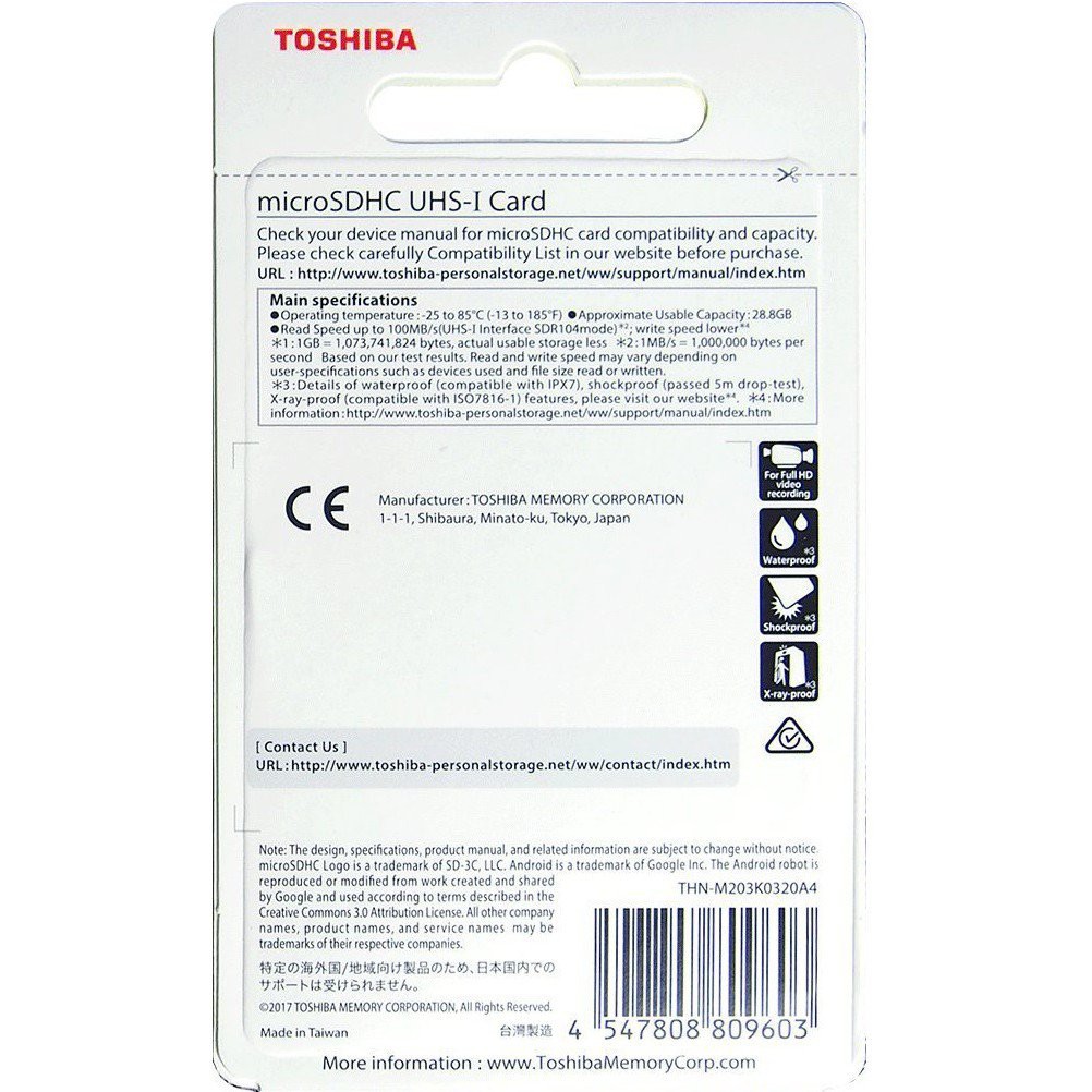 ✔️ Siêu bền bỉ: Thẻ nhớ MicroSDHC Toshiba Exceria U1 100MB/s có thể chống nước, nhiệt độ, chống sock,chống tia X-ray, giữ cho dữ liệu của bạn an toàn và được bảo hành 2 năm.