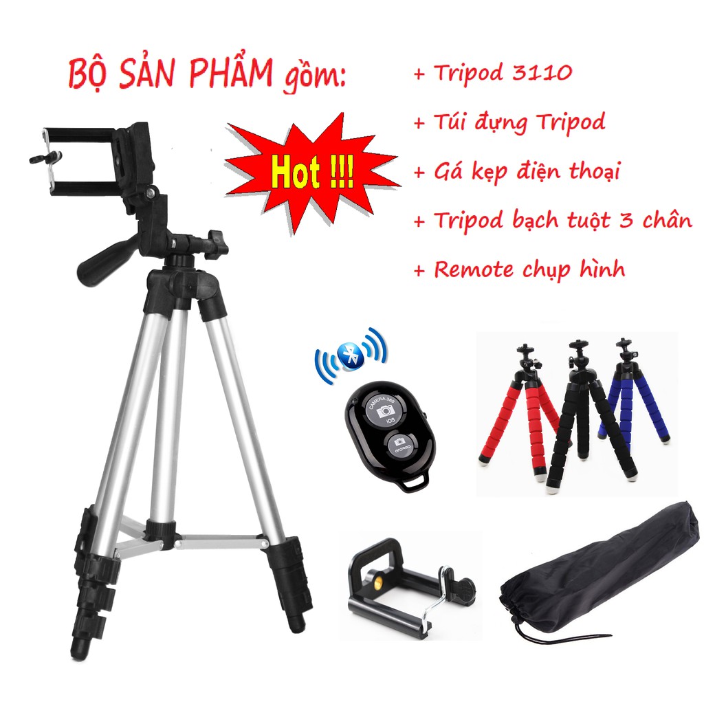 [HÀNG TỐT] Gậy Chụp Hình Tripod 3110 + Tặng kèm 1 Remote chụp hình + Tripod bạch tuột + 1 Gá kẹp điện thoại 001