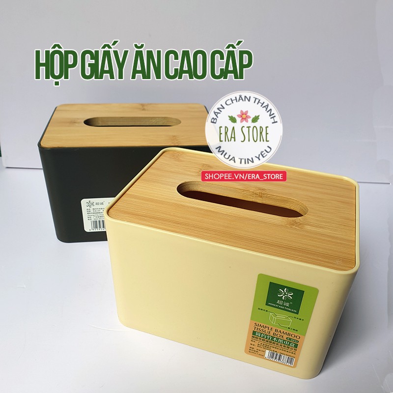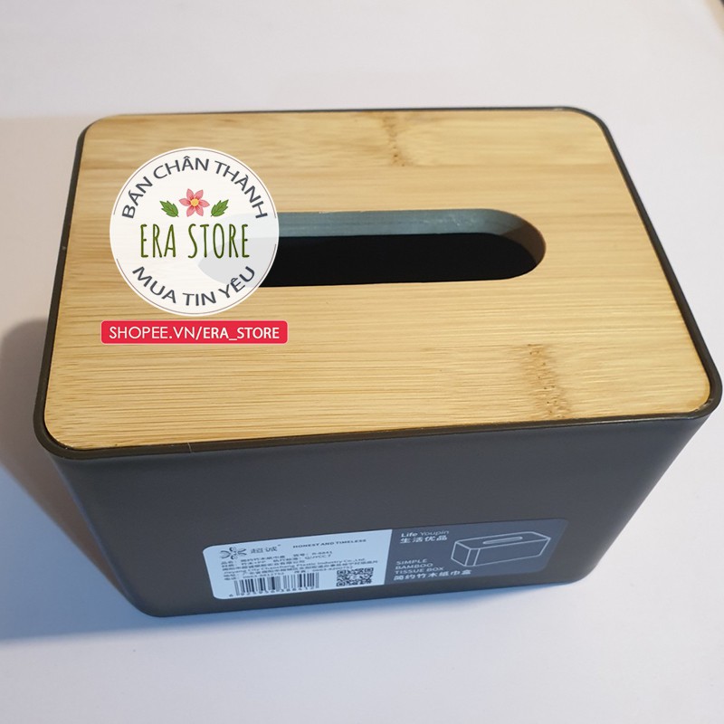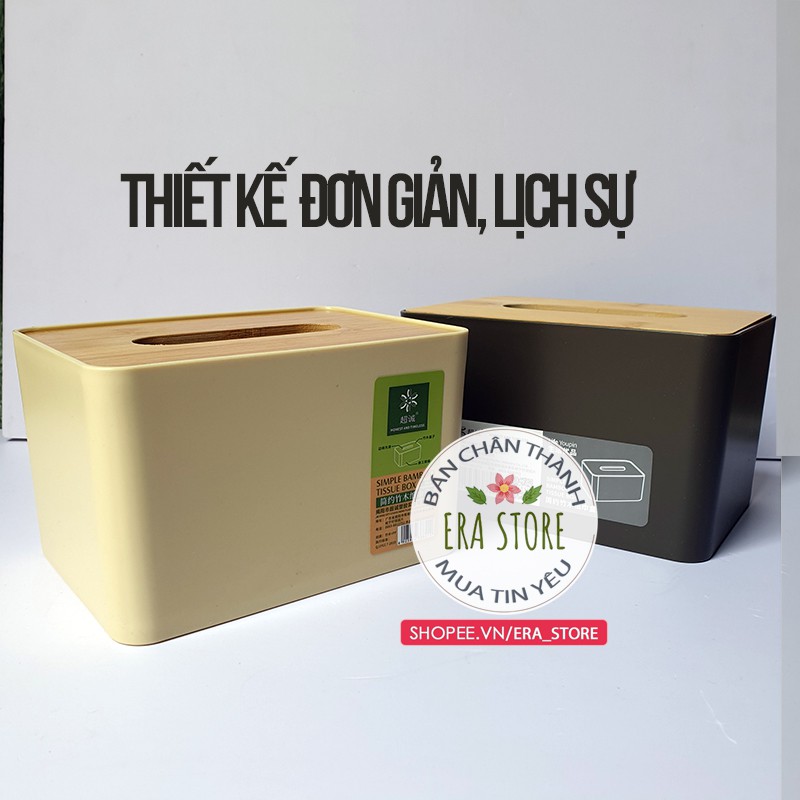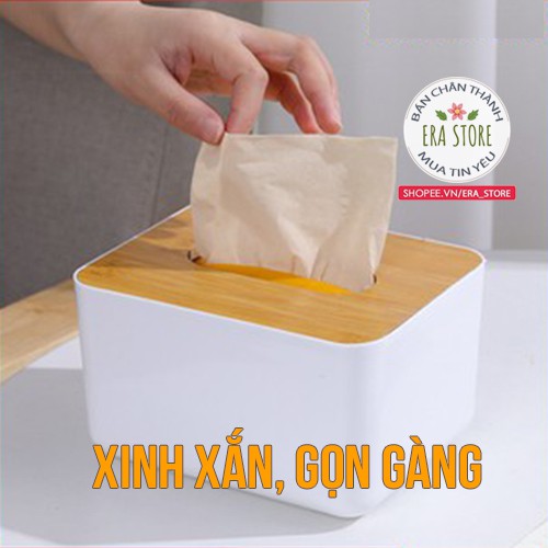 Giới thiệu [HÀNG TỐT] Hộp đựng giấy ăn nắp tre vân gỗ đơn giản thanh lịch tiện dùng phòng ăn bàn làm việc