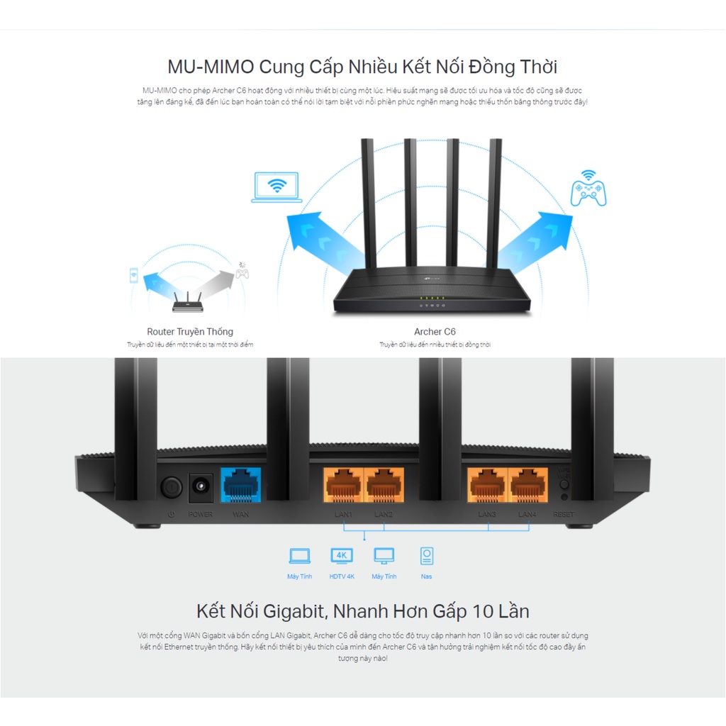 👉 Công Nghệ MU-MIMO – Truyền tải dữ liệu cùng lúc đến nhiều thiết bị với hiệu suất nhanh gấp 2 lần.