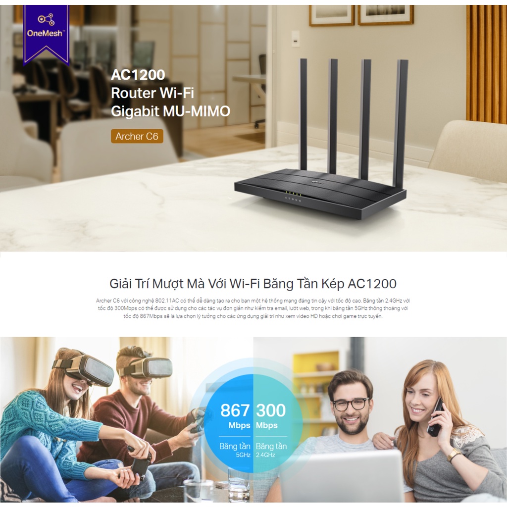 Giới thiệu XÃ KHO TP-Link Archer C6v3 Phát WiFi Gigabite Hỗ Trợ OneMesh
