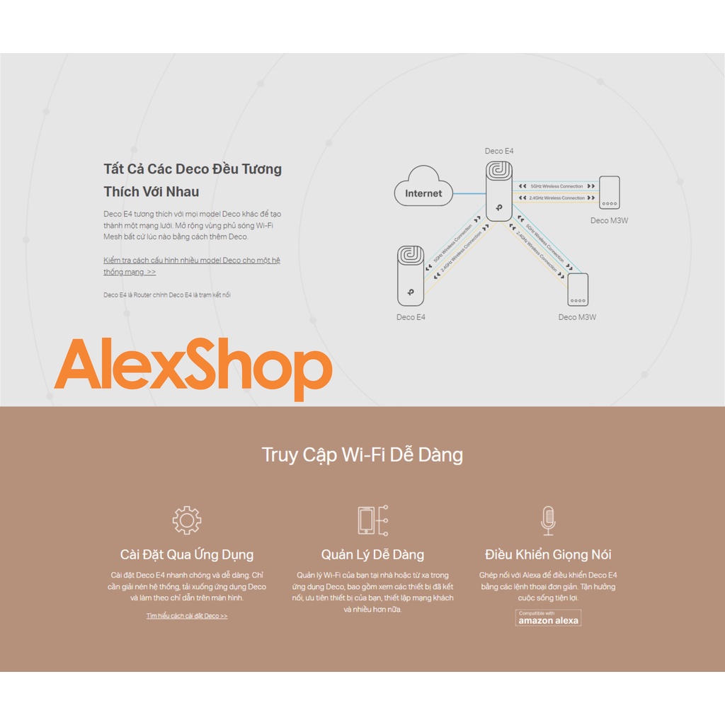 Giới thiệu XÃ KHO TP-Link Deco E4 (3 pack / 2 pack) Hệ thống Wi-Fi Mesh Nhà Rộng Max 400m2