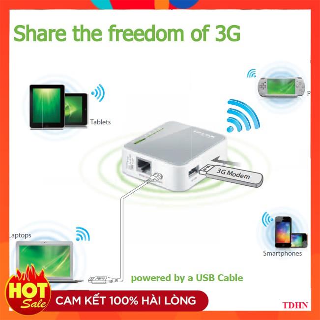 - Bằng phương thức kết nối modem USB 3G với router, bạn có thể tạo ra ngay một điểm truy cập Wi-Fi 3G Kiểu Dáng Du Lịch và Được Trang Bị Cổng Mini USBĐiều làm cho bộ định tuyến này trở nên nổi bất đó chính là thiết kế nhỏ gọn kiểu dáng du lịch và được trang bị cổng Mini USB, nơi mà bạn có thể kết nối với Laptop hoặc cục sạc nguồn để sử dụng như là một thiết bị cấp nguồn. Khi bạn sử dụng với laptop, thiết bị TL-MR3020 được cấp nguồn và sẽ tạo ra một kết nối không dây để sử dụng với một loạt các sản phẩm công nghệ như iPads™, iTouches™, Android™ Phones, Kindles™ và đa phần các thiết bị di động cho phép kết nối Wi-Fi khác.