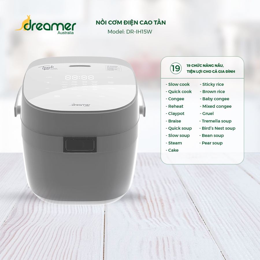 Giới thiệu [HÀNG ÚC CHÍNH HÃNG]-Nồi Cơm Điện Cao Tần 19 Chức Năng Nấu Dreamer bảo hành toàn quốc, tặng kèm phụ kiện - DR-IH15W