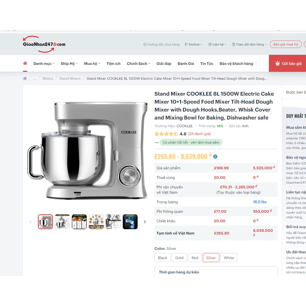 Thương hiệu: COOKLEE thương hiệu cao cấp về các dòng máy nhào bột. COOKLEE được xuất đi nhiều nước trên thế giới UK, Mỹ, được bán rộng rãi trên sàn thương mại điện tử AMAZONE với nhiều lượt đánh giá cao. Các bên dịch vụ order về với giá vô cùng đắt đỏ, gần 8 triệu đồng
