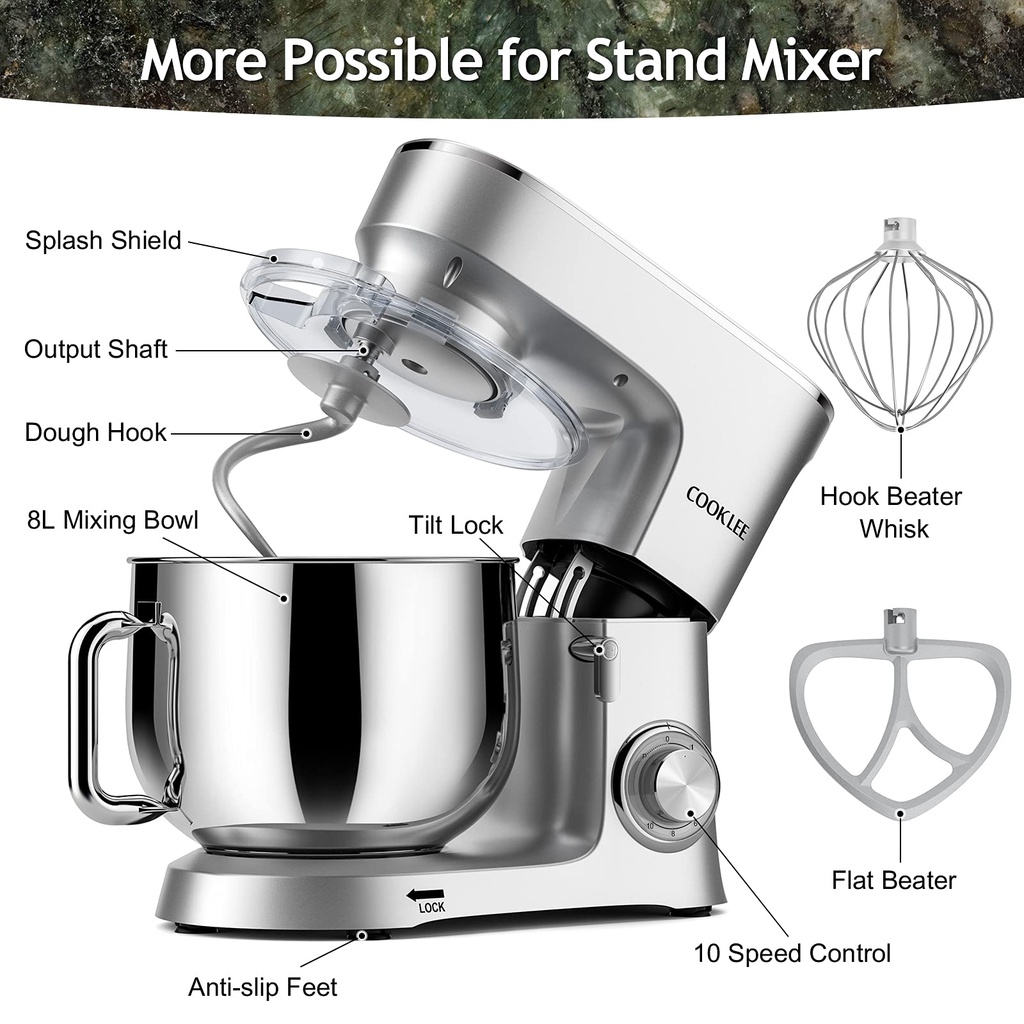 Thiết Bị Điện Gia Dụng > Đồ gia dụng nhà bếp > Máy trộn thực phẩm || (Hàng UK, Mỹ) Máy nhào bột COOKLEE 8L 1500W SM-1551 10 tốc độ sử dụng- Bánh răng bằng kim loại nhào được 1.2 kg bột khôCòn hàng