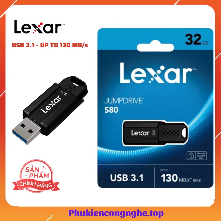 Máy tính & Laptop > Thiết Bị Lưu Trữ > USB & OTG || [Chính Hãng] USB Lexar JumpDrive 32GB S80 USB 3.1 Flash Drive LJDS080032G-BNBNGCòn hàng