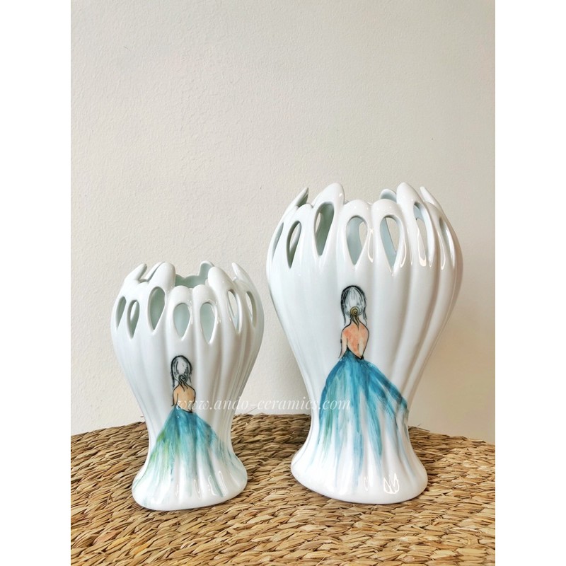 Nhà cửa & Đời sống > Trang trí nhà cửa > Bình trang trí || HÀNG VẼ | Lọ Bàn Tay Phật Cô Gái Đầm Xanh | Gốm Sứ Chuẩn Bát TràngCòn hàng