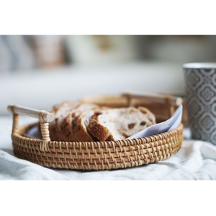 (Hàng Việt Nam) Khay mây tre đan có tay cầm, giỏ mây decor đựng đồ ăn vintage - cutam.homedecor
