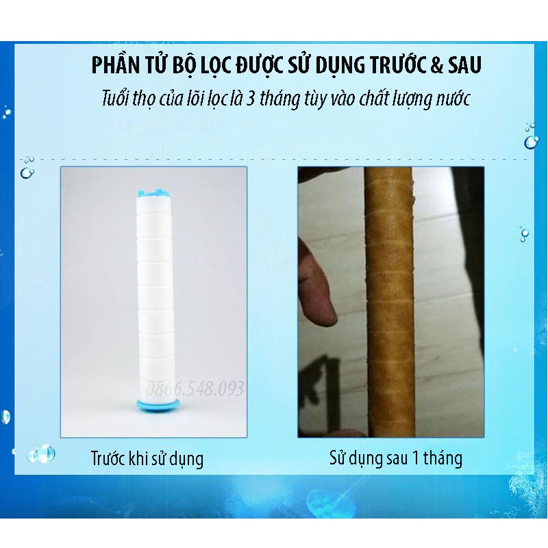 1. Đặc tính sản phẩm: Đầu lọc siêu nhỏ dưới 5micro giúp loại bỏ nước gỉ sét, kim loại nặng phát sinh qua đường ống đã cũ.