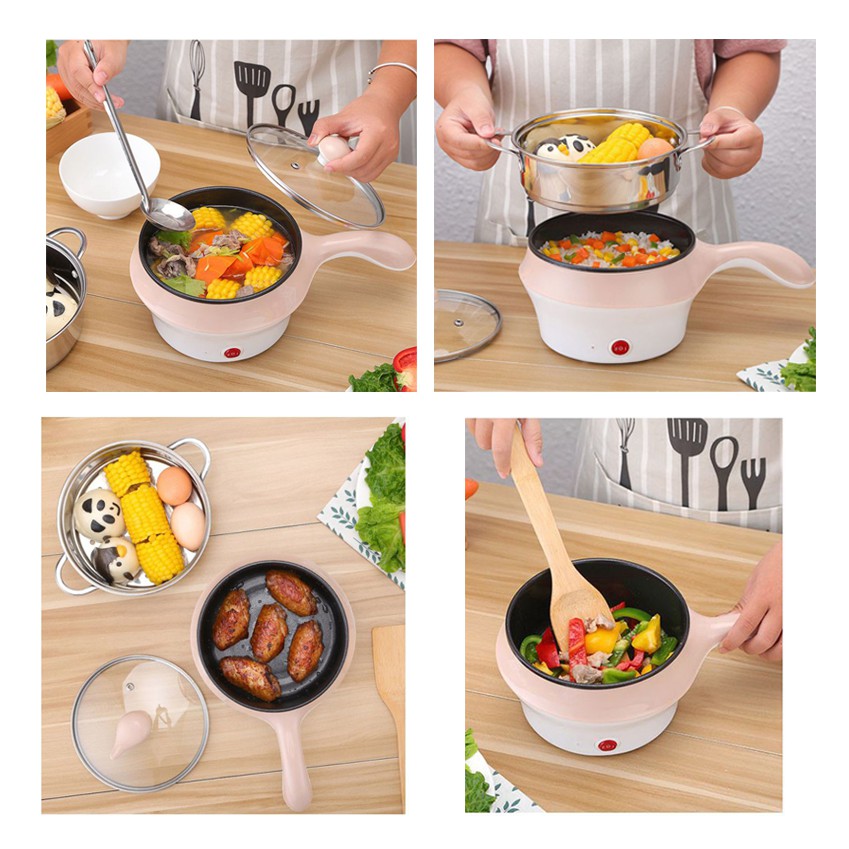 HÀNG XỊN Nồi Điện Mini Hai Tầng Đa Năng Tặng Kèm Khay Hấp có thể Chiên, Xào, Nấu ăn, nấu cơm, nấu lẩu mini