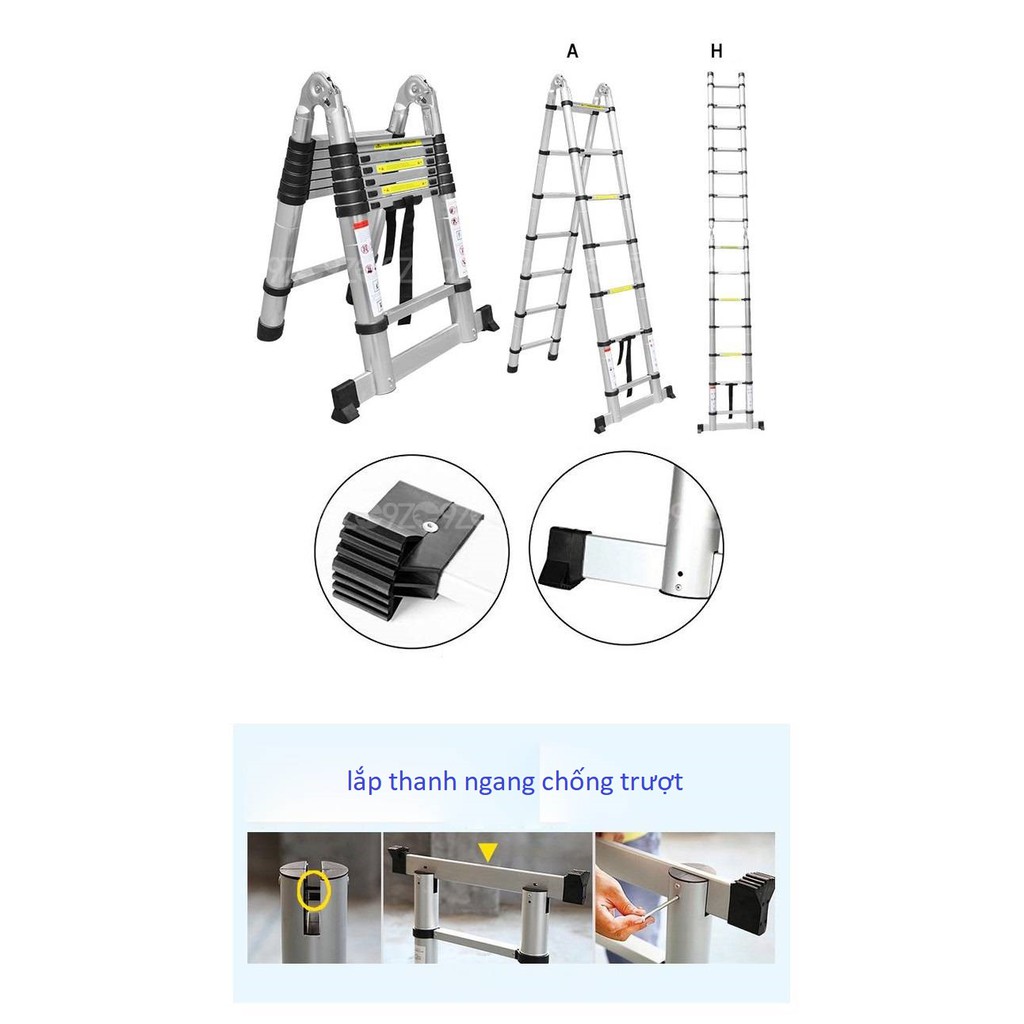 Chiều cao tối đa chữ A 1.83m - Chiều cao tối đa duỗi thẳng 3.8m