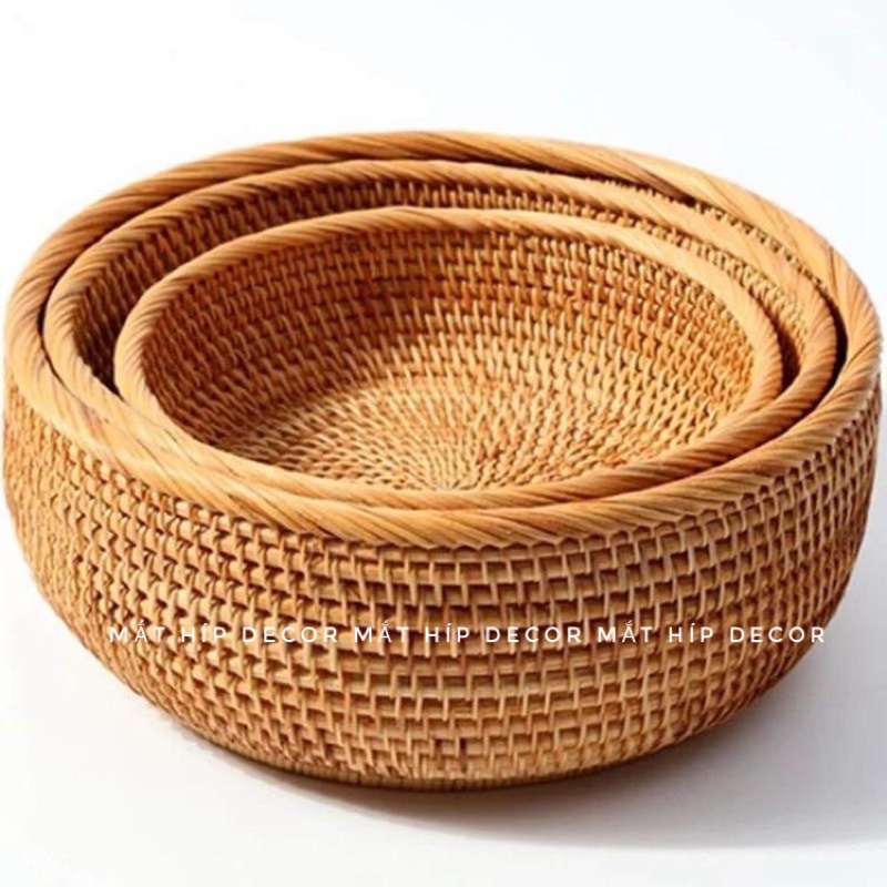 Nhà cửa & Đời sống > Bộ đồ bàn ăn > Khay, tấm lót bàn ăn || Hàng xuất Hàn-Khay mây tròn Vintage bộ 3 cái dùng để decor nhà cửa, chụp ảnh sản phẩmCòn hàng