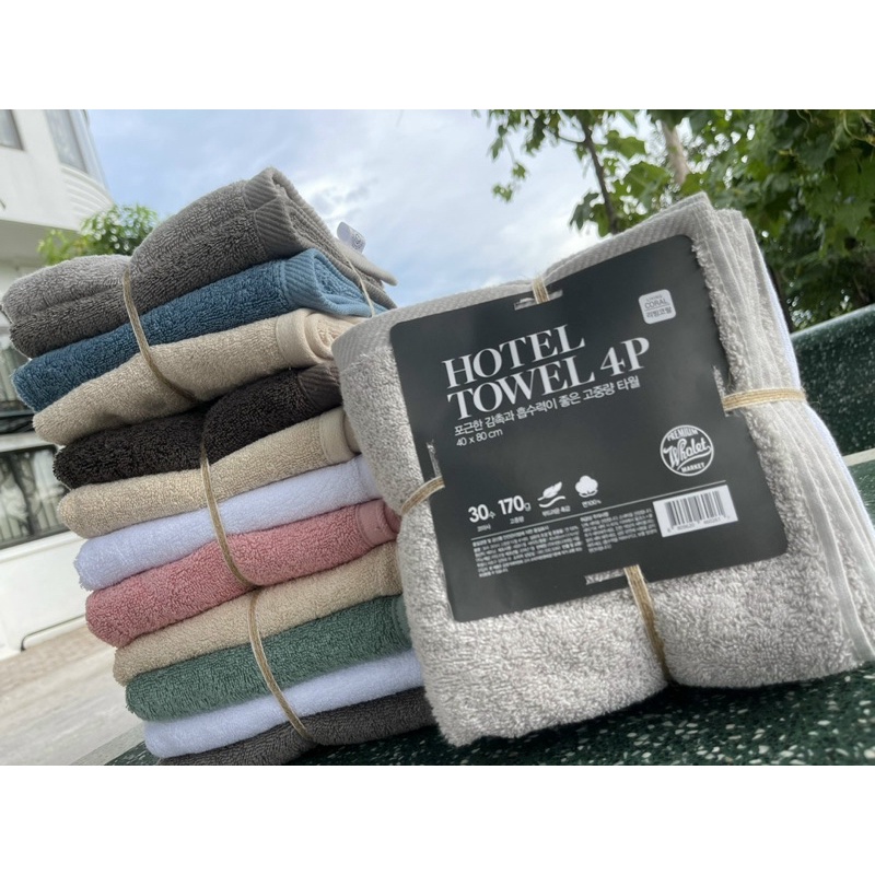 Hàng xuất Hàn xịn-Khăn tắm set 4c chất cotton siêu mềm 40*80cm hàng đẹp bao kiểm hàng
