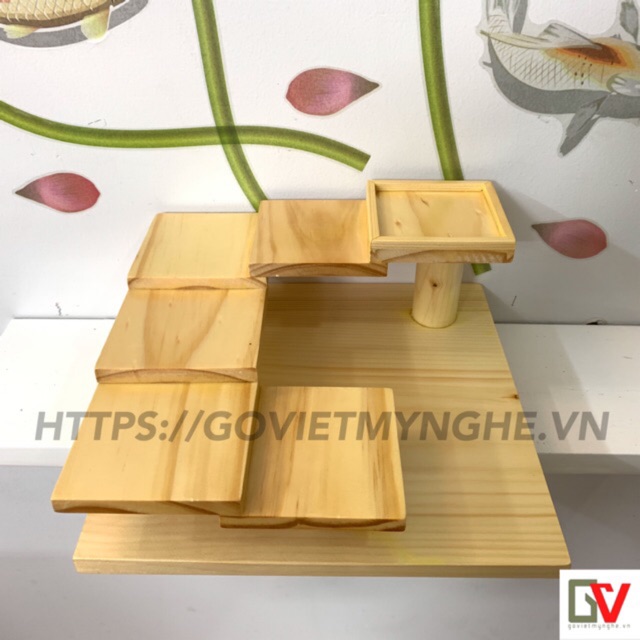 + Khay gỗ bậc thang kích thước: Dài 21cm x Rộng 21cm x Cao 12.5cm.