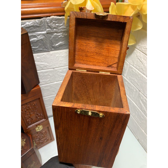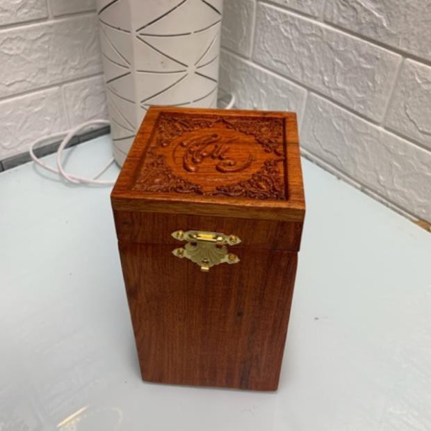 hộp đựng trà vuông đục chữ phúc, được làm từ gỗ hương tự nhiên một trong các loại gỗ quý và tốt nhất