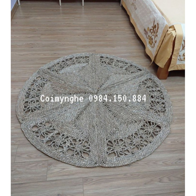 Thảm cói được đan thủ công bằng sợi cói chọn đẹp tự nhiên rất chắc chắn và mang tính thẩm mỹ cao, giữ nguyên màu tự nhiên của sợi cói .Điểm nhấn của thảm ở viền hoa cúc được làm tỉ mỉ, công phu. thảm dễ vệ sinh, có độ bền cao. Khi không dùng có thể gấp gọn theo các múi 1 cách dễ dàng.
