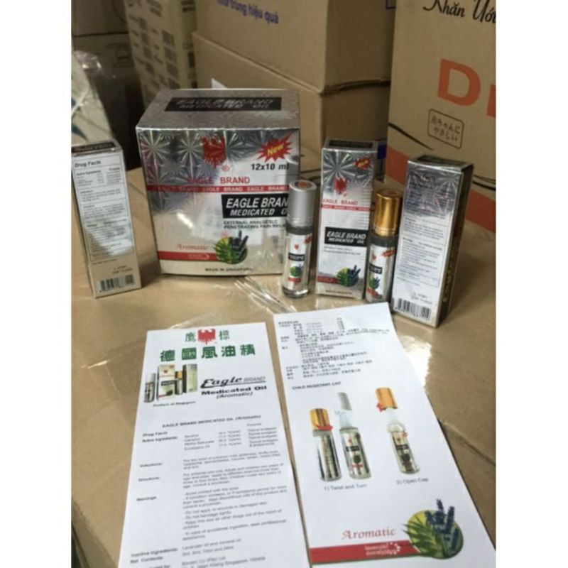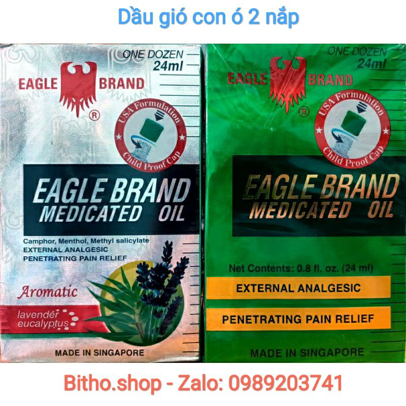 Giới thiệu [Chính hãng xuất Mỹ 2026]Dầu gió cảm lạnh con ó xanh/trắng , vàng Eagle Brand chai 10ml - 24ml hàng Singapore (2 nắp)