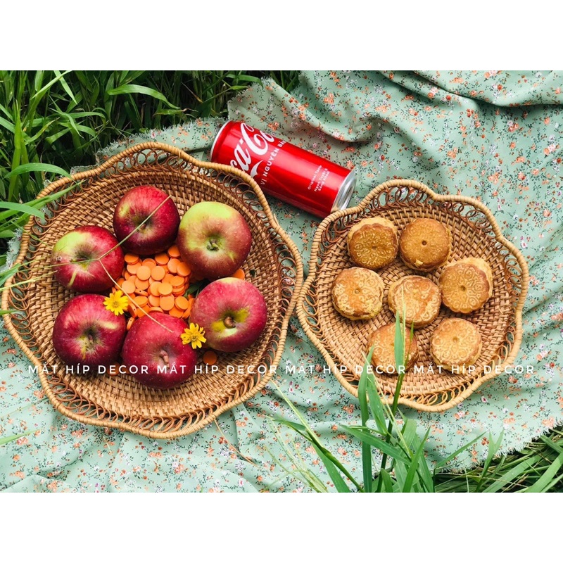 Nhà cửa & Đời sống > Bộ đồ bàn ăn > Khay, tấm lót bàn ăn || Hàng xuất Nhật-Khay mây Vintage hình hoa sen bộ 2 cái dùng để đựng bánh, đồ ăn, hoa quả, bánh kẹo, đồ decorCòn hàng