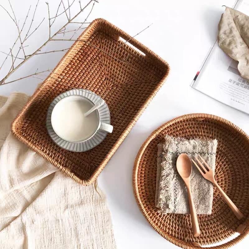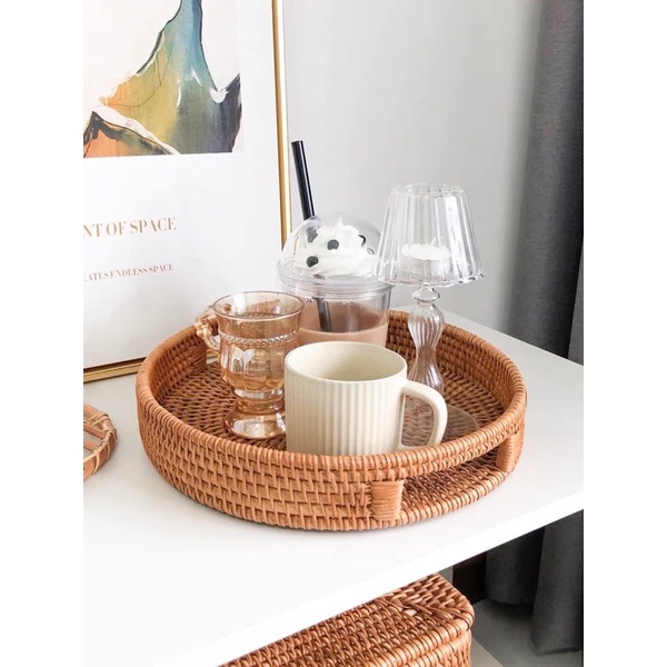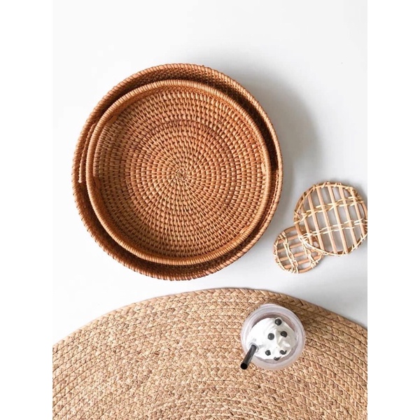 Bộ 2 khay mây tròn Vintage hàng xuất Nhật chuẩn xịn, hàng mới sản xuất liên tục ( nói không với hàng tồn kho, cũ )Với kinh nghiệm sản xuất lâu năm nghề truyền thống mây tre cói bèo, thợ làng nghề đan sản phẩm tinh xảo, cẩn thận nhất