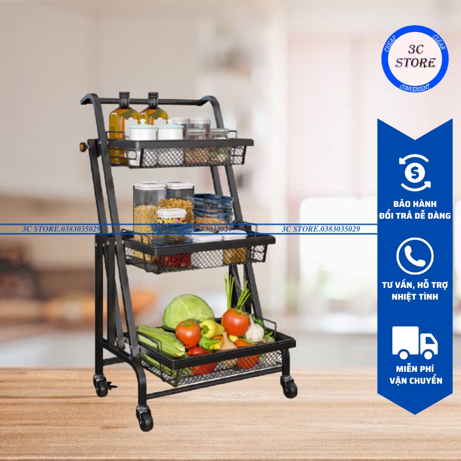 ✅HÀNG XUẤT XƯỞNG✅ Kệ Để Đồ Nhà Bếp Gấp Gọn - Xe Đẩy Đựng Đồ Đa Năng Thép Carbon Sơn Tĩnh Điện Có Bánh Xe Di Chuyển
