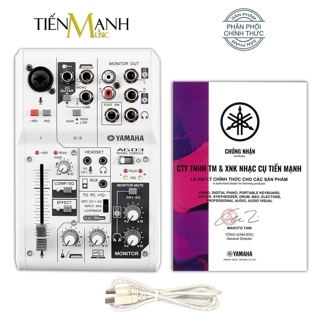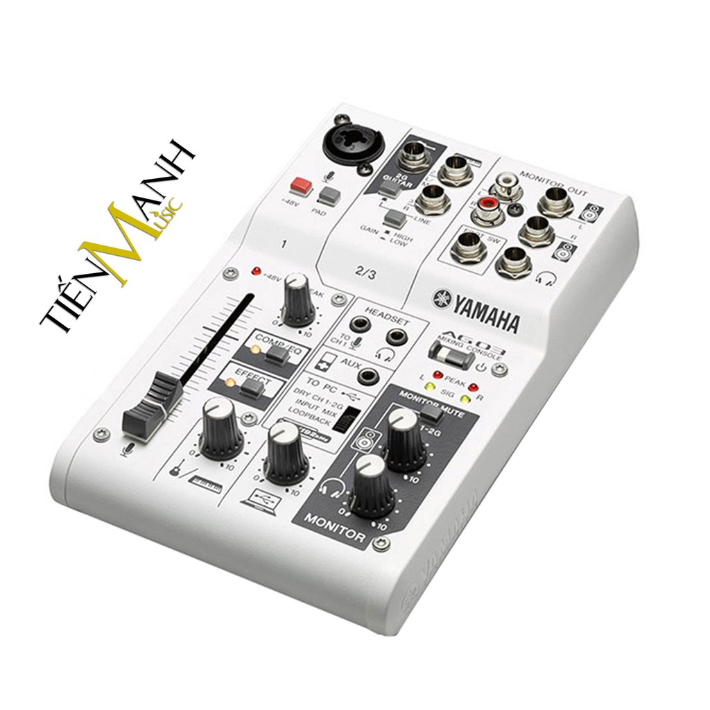 - Mixer Yamaha AG03 có 3 cổng in, tích hợp cổng USB audio với kích thước nhỏ gọn. Hỗ trợ DSP Control tăng khả năng tinh chỉnh chất lượng âm thanh, hỗ trợ thu phát với chất lượng âm thanh phân giải cao 24-Bit/192 khz Cho phép thu âm hoặc phát trực tuyến các buổi biểu diễn nhỏ, podcast, thu âm bài giảng hoặc tương tự trên Ipad, Mac và PC. Mixer Yamaha AG03 sẽ là sự lựa chọn thông minh của bạn