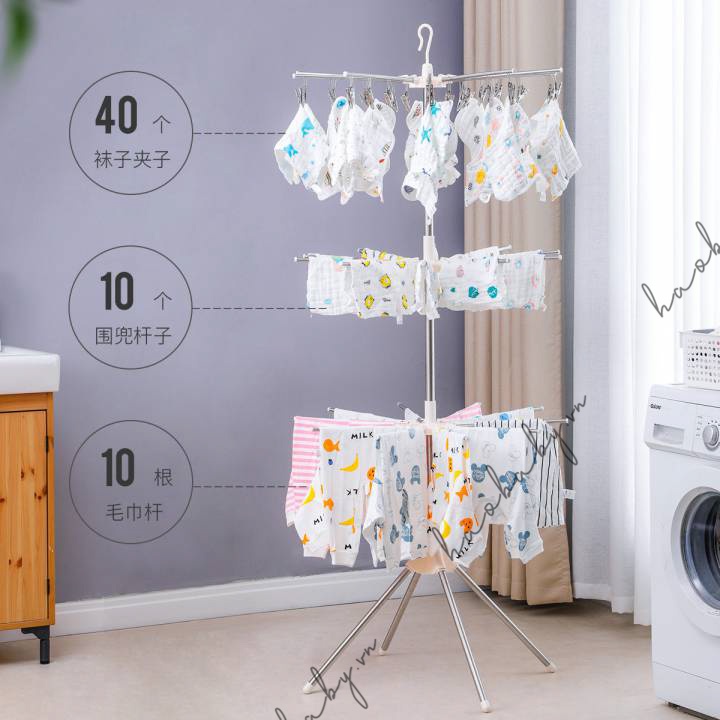 Giới thiệu [Haobaby shop] Cây phơi đồ đa năng cho bé 3 tầng inox, móc phơi đồ em bé, treo đồ cho trẻ em, bé sơ sinh