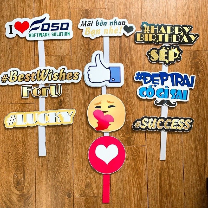 hashtag cầm tay, biển tên cầm tay trang trí sinh nhật, trang trí tiệc khai trương, sự kiện thiết kế riêng theo yêu cầu