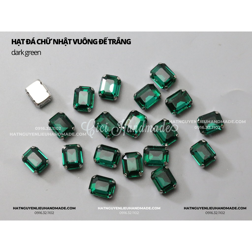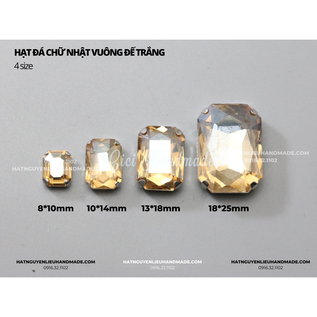 Hạt đá chữ nhật vuông đế trắng có lỗ để khâu, hạt đá bắt sáng cao cấp, đế TRẮNG BẠC có lỗ khâu dùng để khâu đính váy, quần áo, phụ kiện thời trang, làm đồ handmade,....Size : 8*10mm - Túi 10 hạt