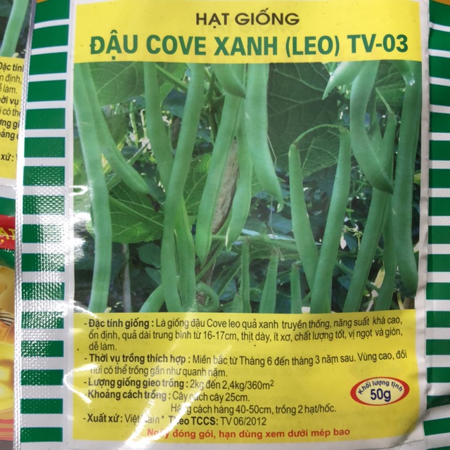 ✅ 01 gói hạt đậu Cove Xanh leo ☘️ 50 gr/ góiTỷ lệ nảy mầm >80%
