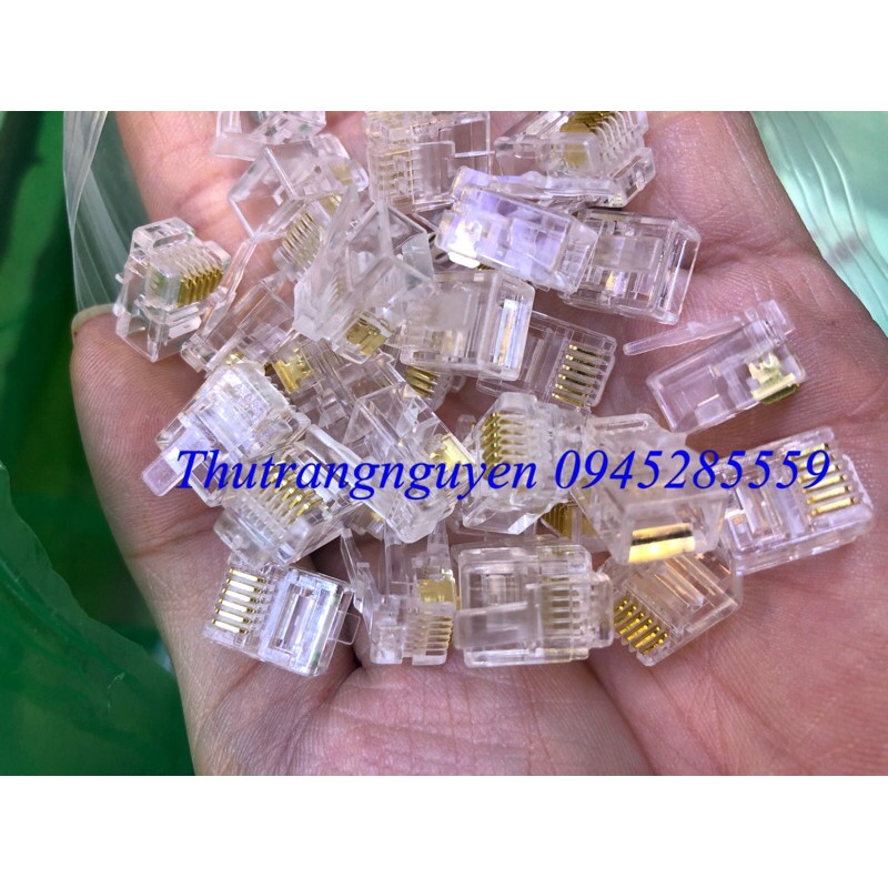 Hạt điện thoại 6 chân RJ12 (bằng đồng)100 hạt