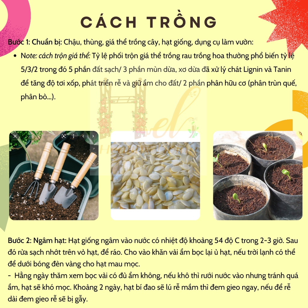 - Hạt có thể gieo trực tiếp xuống đất, rồi phủ đất có trộn phân chuồng. Tuy nhiên, ngâm ủ hạt trước khi gieo thì tỷ lệ nảy mầm sẽ cao hơn.
