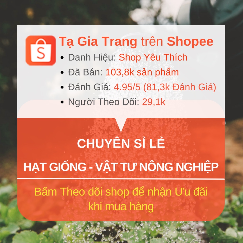 // Hãy bấm follow/ theo dõi shop để nhận được ưu đãi khi mua hàng bạn nhé//*Tạ Gia Trang - Chuyên cung cấp sỉ lẻ các loại hạt giống rau, hoa, vật tư nông nghiệp chất lượng cao. Khi gặp bất cứ vấn đề gì, các bạn vui lòng inbox/nhắn tin shop sẽ kiểm tra, phản hồi toàn bộ tin nhắn trong thời gian không quá 12 giờ sau khi nhận.