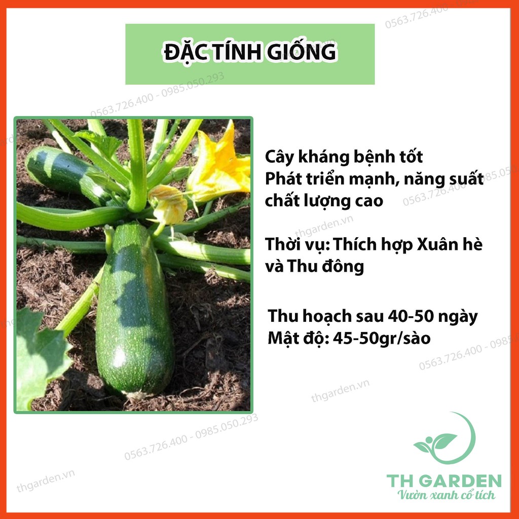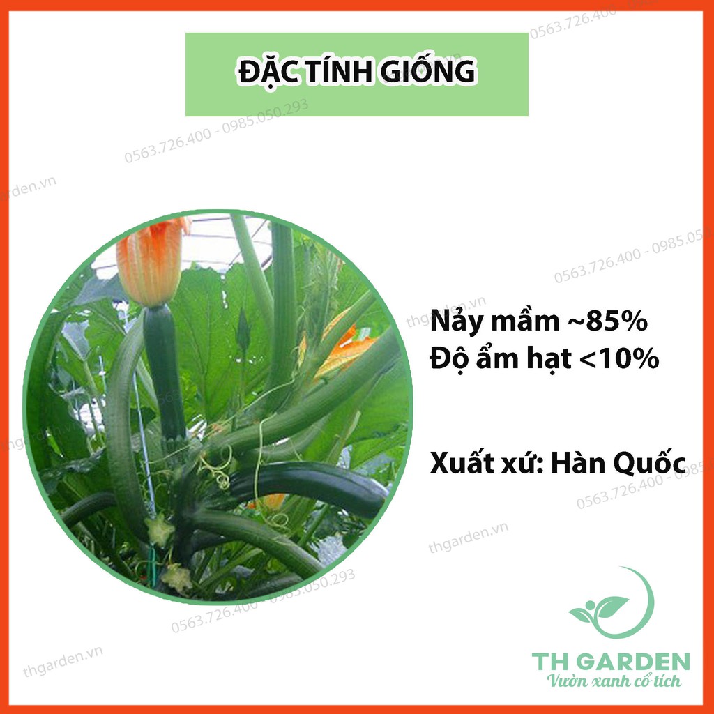 🌿 Đặc tính giống: sinh trưởng và phát triển khỏe, kháng bệnh tốt, trái tròn dài láng, dài 23 – 26 cm, đường kính 5 – 7 cm màu xanh sáng rất đẹp, thịt chắc dày, ăn ngon ngọt.