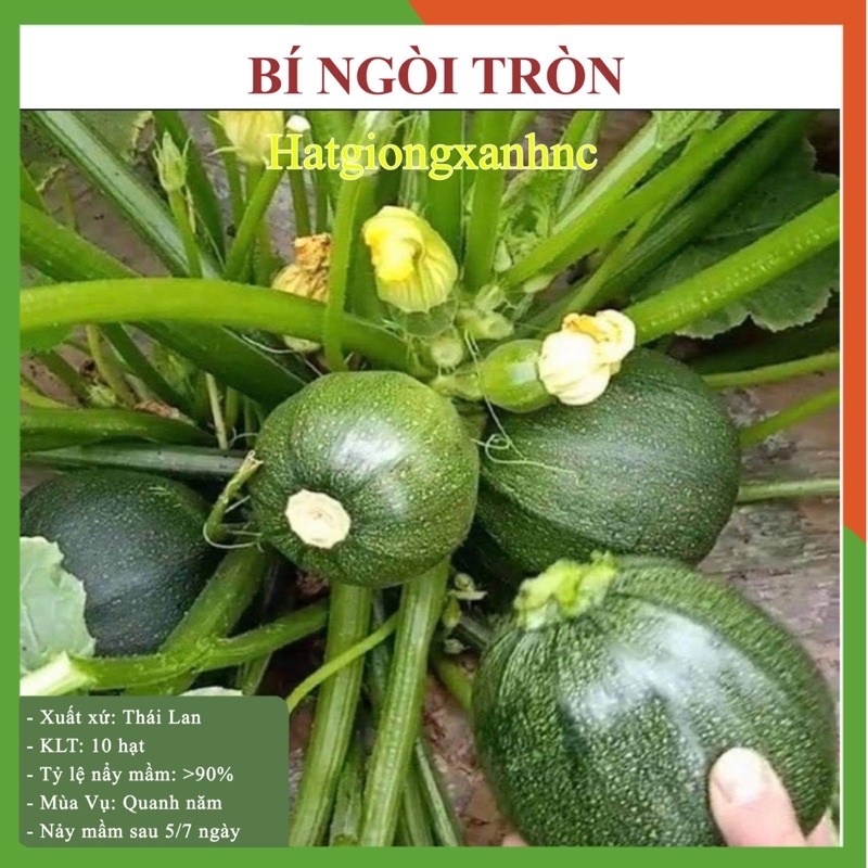 Hạt giống Bí ngồi tròn (còn có tên gọi là bí ngòi, bí xanh) là giống bí có chứa nhiều vitamin và các khoáng vi lượng tốt cho sức khỏe.hạt giống Bí ngòi tròn thường được đánh giá là cây mùa hè, bởi vì nó phát triển mạnh và cho nhiều trái nhất vào thời điểm này.