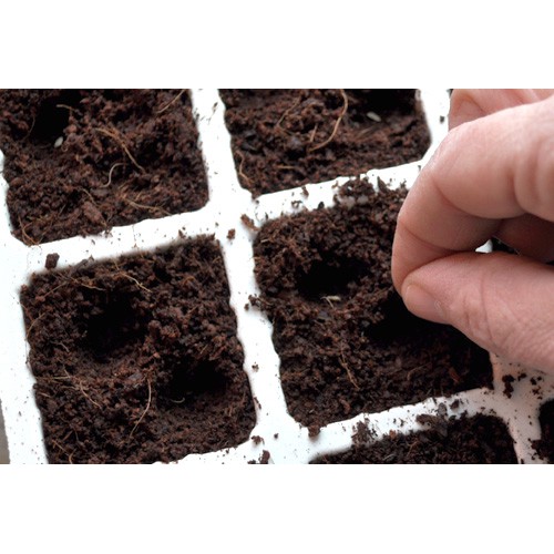 - Gieo 1 hạt/hốc, sau khi gieo phủ một lớp giá thể mỏng để che lấp hạt. Khay gieo hạt phải để trong nhà có mái che, bằng vật liệu sáng (nylon hoặc tấm nhựa trắng).