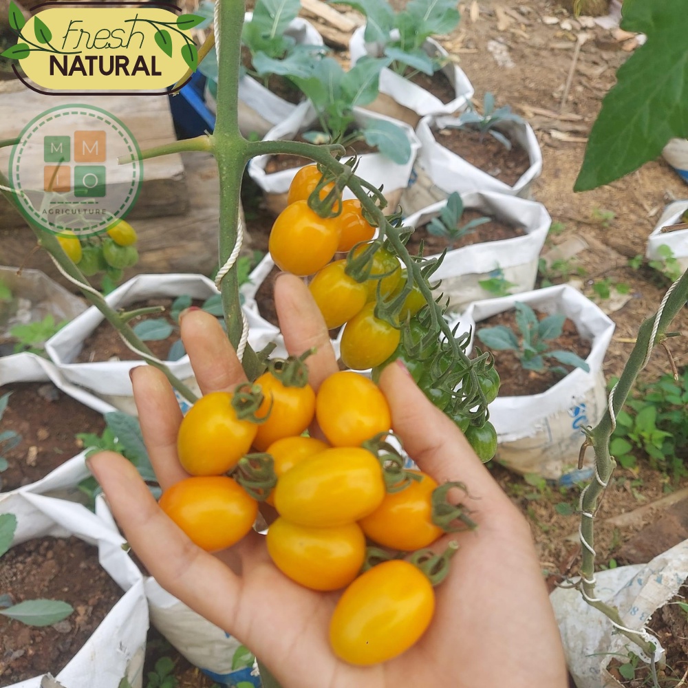 🌱 Đặc điểm: Cà Chua Cherry Vàng là cây sinh trưởng HỮU HẠN (ra quả tầm trung), có khả năng kháng bệnh xoăn lá, sương mai rất tốt, trái tròn trứng màu vàng cam bóng, thịt dày, ngọt, bảo quản vận chuyển tốt. Trái nặng 13 - 15 gram , cứng và có độ đồng đều rất cao.