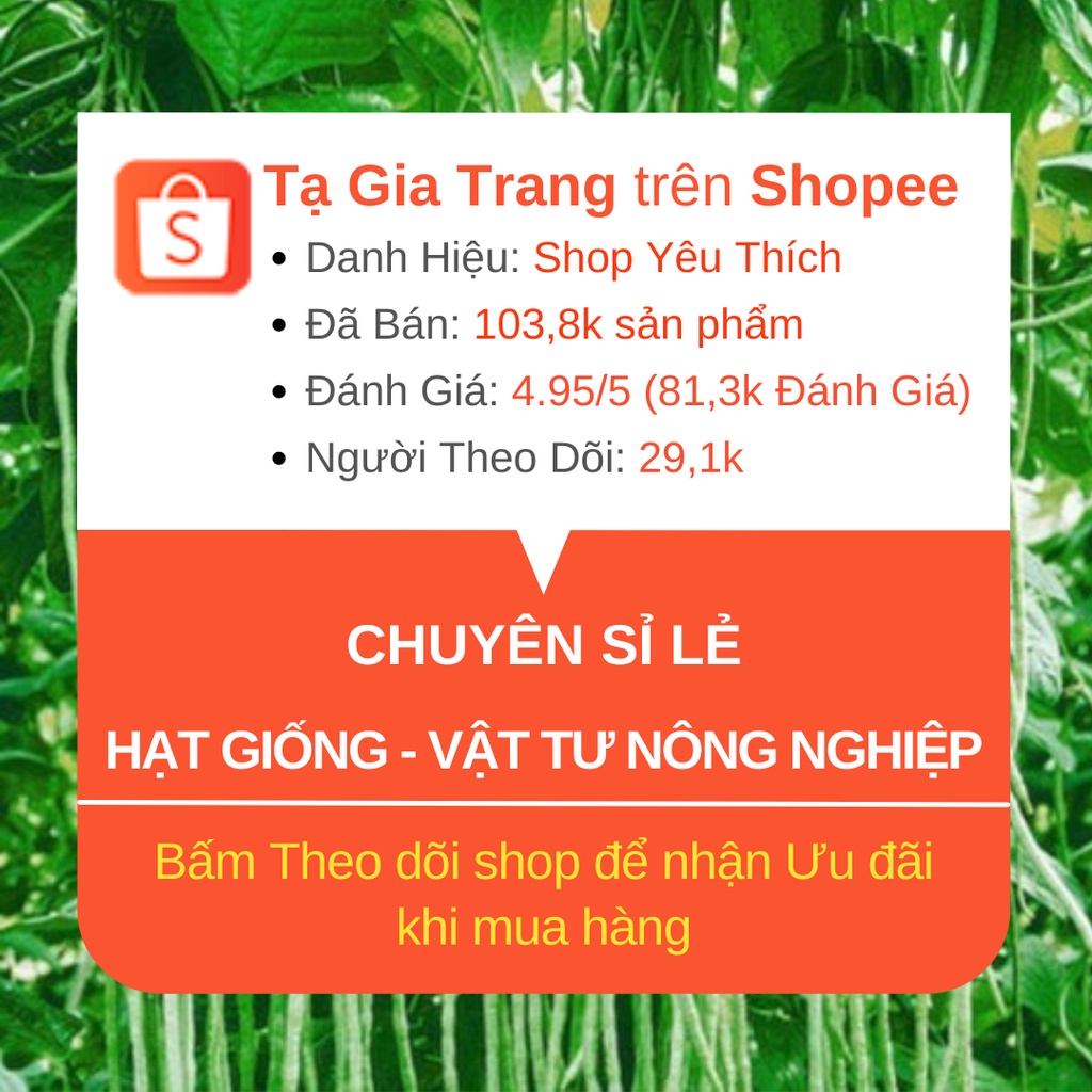 // Hãy bấm follow/ theo dõi shop để nhận được ưu đãi khi mua hàng bạn nhé//*Tạ Gia Trang - Chuyên cung cấp sỉ lẻ các loại hạt giống rau, hoa, vật tư nông nghiệp chất lượng cao. Khi cần tư vấn hoặc gặp bất cứ vấn đề gì liên quan sản phẩm, các bạn vui lòng inbox/nhắn tin shop sẽ kiểm tra, phản hồi toàn bộ tin nhắn trong thời gian không quá 12 giờ sau khi nhận.