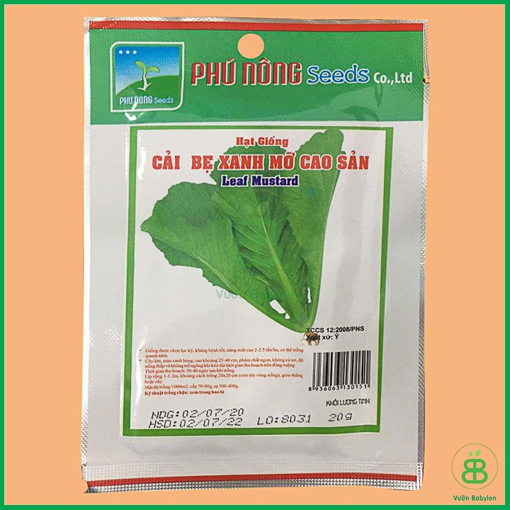 Vườn Babylon Xin Kính Chào Qúy Khách!Hạt Giống Cải Bẹ Xanh 20Gr