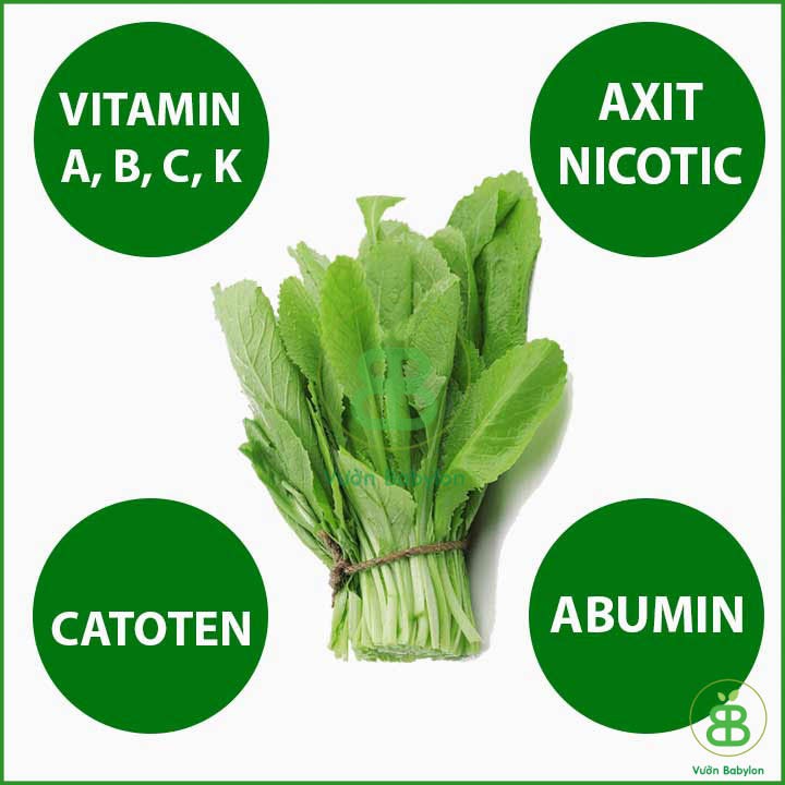 - Theo Đông y cải bẹ xanh có vị cay, tính ôn, có tác dụng giải cảm hàn, thông đàm, lợi khí… Thành phần dinh dưỡng trong cải bẹ xanh gồm có: vitamin A, B, C, K, axit nicotic, catoten, abumin… Cải bẹ xanh được các chuyên gia dinh dưỡng khuyên dùng vì có nhiều lợi ích đối với sức khỏe cũng như có tác dụng phòng chống bệnh tật.